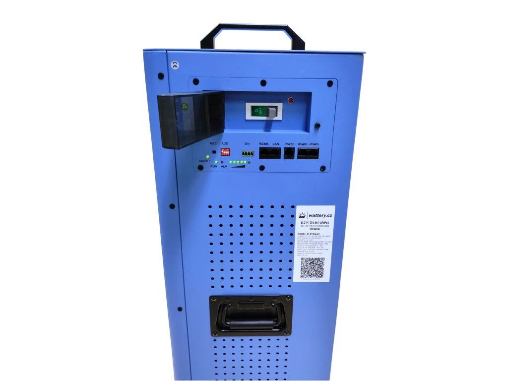 Česká nízkonapěťová baterie LiFePo4 řady "Premium" ve vertikálním provedení na kolečkách, navržená jako pocta VICTRONU pro prostory, kde je omezená podlahová plocha o kapacitě 16kWh vhodná pro FVE (fotovoltaické elektrárny) a BESS (battery energy storage system). Uložiště má dva přednastavené DRY kontakty, které spínají při hodnotě nabití baterie < 50% a < 90%, na kontakty lze připojit wifi relé TUYA nebo SONOFF a řídit chytré zásuvky v aplikaci Smart Life.